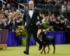 A Doberman pinscher named Penny won best in show Tuesday night at the Westminster Kennel Club Dog Show, netting U.S. show dogs’ most coveted prize — and giving veteran handler Andy Linton another win after nearly four decades.